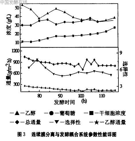 通过乙醇连续发酵一渗透汽化耦合实验和发酵动力学研究发现,渗透汽化膜选择性分离出产物乙