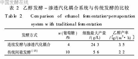 硅橡胶膜生物反应器中乙醇发酵与渗透汽化的耦合