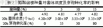 2.2 酪酸菌接种量对菌体浓度及芽孢转化率的影响