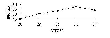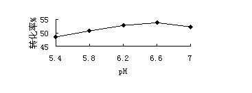 在前述实验的基础上,分别考查pH5.4、5.8、6.2、6.6、7.0等5个发酵培养基对转化率的影响,结果见图3。