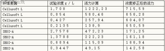 ②浓度修正后,酶的活力数据基本不变(个别数据稍有出入)。可以设想,织物处理用酶量可以用活力作为计算根据,活力高的少用,活力低的多用。?
