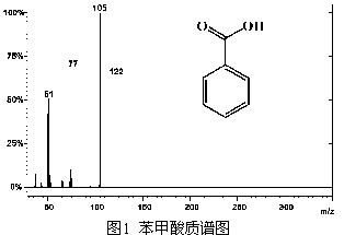 利用GC-MS分析菌株利用联苯生长的反应液,有一个很明显的产物峰出现,鉴定为苯甲酸,结果如图1所示