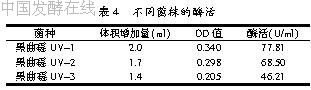 通过多次筛选和酶活大小的比较,黑曲霉UV-1产酶量始终较高。