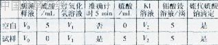 在一定条件下,过氧化氢酶能把H202分解为H20和02。当过氧化氢酶与H202反应一定时问后,用碘量法测定未分解的H202。即,以钼酸铵作催化剂,H202与KI反应,放出游离碘,然后用硫代硫酸钠滴定碘,通过换算得出消耗的过氧化氢的量,反应式为: