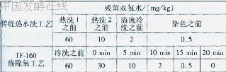 表5过氧化氢酶TF.160与传统热水洗工艺的除氧效果对比