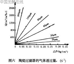 1) 化工液体过滤。主要用于化学工业中酸、碱性液体过滤, 石化行业中航空煤油, 柴油过滤, 各种有机液体过滤等。如化纤行业中丙烯晴(N 2)单位过滤, 合成橡胶工业中丁基铝催化剂过滤,制药行业中的青霉素, 链霉素等针剂过滤。洛阳石油化工总厂油品车间采用20—30Lm 的石英质陶瓷过滤管进行航空煤油过滤, 其过滤精度0.8Lm, 滤速达到10m 3/h 以上, 运行三年来, 效果一直很好。天津碱厂采用刚玉质陶瓷过滤管进行碳酸镁液过滤, 滤速也达到1m 3/h 长期运行, 效果很好。采用陶瓷过滤器进行液体过滤与相同介质过滤的极框压滤机相比, 投资可减少40% 以上, 效率提高2—4 倍。