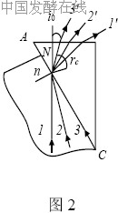 如图1所示。光由折射率为n的介质射入折射率为N的介质时,由折射定律知,入射角i与折射角r有以下关系: