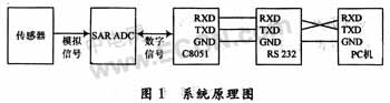 由于单片机串口TTL电平与标准的RS 232C信号电平范围不一致,所以在与之进行通讯的时候,首先要将TTL电平信号进行一定的转换,使之符合RS 232C的信号规范。本系统中,选择MAX公司的MAX 232进行电平信号转换。