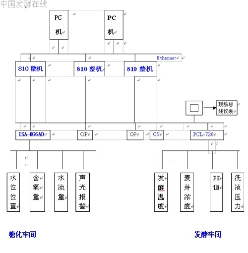 典型的啤酒生产过程的计算机数据采集与监控系统整体组成方案结构图如下所示