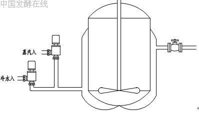 在工程实践中,对于10m3以下的种子罐,我们采用气动开关阀控制其温度,而且摒弃了传统的热水罐,直接采用蒸汽控制来进行保温和升温。可以省掉一般设计的热水系统,一方面节约了投资,另一方面减少了相应的管路安装空间。