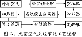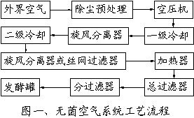 1 传统无菌空气系统净化工艺 一般发酵用无菌空气系统工艺流程如图一。