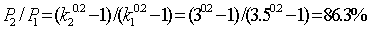 其中: m:空气多变压缩指数,取1.25,则(m-1)/m=0.2 p1:进口空气压力; v1:进口空气流量; k:压缩比,出口压力与进口压力的比值(绝压比); 由于系统阻力损失降低,空压机出口压力从0.25MPa下降到0.2MPa(表压),功率P比值可表达为: