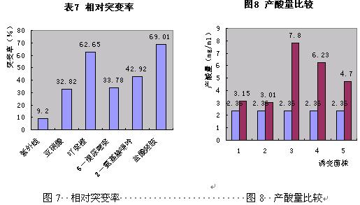 图7 相对突变率 图8 产酸量比较