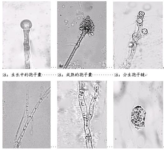 注:气生菌丝和足细胞 注:分杈菌丝 注:闭囊壳