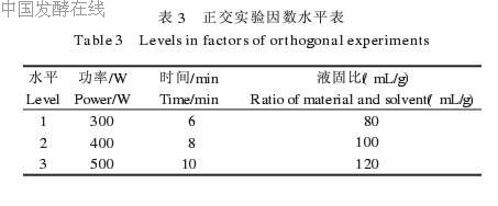 按照所设计三水平三因素L(933)正交设计实验,实验结果如表3、表4。