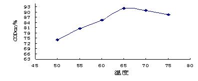 由图2可知,随着温度的升高,CODcr的去除率逐渐增大。当温度增大到65℃时,CODcr的去除率达到最大。但随着温度的继续增大,CODcr的去除率逐渐下降。究其原因是[4]:活性炭吸附为物理吸附,吸附过程为放热过程,温度太高不利于吸附,温度升高,吸附效果反而下降。因此温度为65℃时,吸附效果最好。