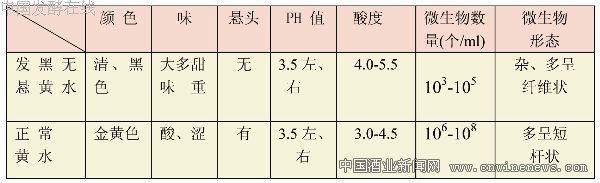 在浓香型白酒生产中,因为其续糟的工艺特点、生产操作的粗放、工艺调节的经验性和客观因素的多变,给生产带来很大的不稳定性。在生产中,较容易的单一产率工艺或单一质量工艺,都不会被市场和企业自身所接受,考虑企业基酒市场需求和浓香型白酒工艺特点的同时,追求企业基酒生产的最大效益和生产的相对稳定,这是实际生产的理想目标和工艺难点。特别是在白酒市场竞争异常激烈的今天,浓香型白酒企业在生产中则更多选择以酒质为主导的生产工艺,其工艺难度更大,在生产中可能会遇到诸多异常现象如:窖内升温异常、出窖糟醅风格差、入窖或出窖酸度偏高、出窖残糖或残淀偏高、黄水发白或发黑等不正常现象,对这些现象探讨较多,在生产文章来源华夏酒报中,常偏向经验的工艺调节。本文将主要探析浓香型白酒黄水发黑和无悬这一异常现象,希望从生产实践现象结合相关微生物生理和环境等方面理论,分析和总结及相关现象,探讨科学的工艺调节和特殊利用方法。