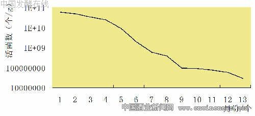 微生物在适宜条件下培养细胞一般都需要经历休眠期、生长对数期(旺盛期)、稳定期和衰亡期四个阶段。在麸曲培养中,必须准确掌握该菌种的生长旺盛时间即对数期。
