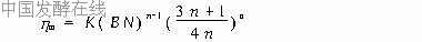 在各种微生物尤其是好氧微生物发酵过程中,氧气作为基本的营养物质直接参予生长和代谢过程。发酵过程中氧传递速率取决于许多因素,如生物反应器的几何尺寸(生物反应器的类型、分布器、搅拌浆的设计等)、流体的性质(粘度、表面张力等)、体系的能量消耗(用于通气和搅拌)。在这些因素中,介质的成分和流变学性质的变化是引起质量传递速率改变的根本原因。对牛顿型流体,湍流是强化混合和传递的有效手段;对于高粘度非牛顿生物体系,情况就要复杂的多。黄原胶不仅作为微生物多糖的典型代表,其发酵过程非牛顿流体性质也使得该体系成为研究生物过程的模式体系。在黄原胶发酵过程中,由于胞外多糖的积累,发酵液的粘度增加,导致体系中氧传递的困难,溶氧浓度成了限制性因素,氧传递速率成为控制整个过程的关键步骤[1 3]。体积氧传质系数kLa作为反应体系氧传递速率的特征参数,直接用于过程的设计、放大和优化。因此,研究黄原胶发酵过程中流变学行为的改变对体积氧传递系数的影响,对于理解、设计、优化、控制这类产品生产过程,提高发酵效率和产品性能具有重要的理论意义和现实意义。本文以野油菜黄单孢菌(Xanthanmonascampestris)为对象,研究10L标准搅拌式发酵罐黄原胶发酵过程中流变学行为和氧传递特征。1 实验部分菌种为野油菜黄单孢菌,中国农业科学院提供,本实验室保藏。培养基成分(w/%):蔗糖4 5,蛋白胨0 5,CaCO30 3;pH7 2,转速5~12s 1,通气速率Ug为1 11~2 78L/(L·min),罐压0 05MPa(G),温度28°C。所使用生物反应器是MBF Ⅲ 10型标准搅拌式玻璃发酵罐,装液量7L,温度、溶氧、pH、搅拌转速、通气速率、及尾气CO2浓度在线检测。黄原胶浓度、糖浓度、菌体浓度及流变学性质(稠度系数K和流变指数n)离线检测。采用苯酚 硫酸法测糖;比色法测菌体浓度;发酵液经稀释后离心(27000g)除菌、乙醇沉淀、110°C干燥至恒重,称重测定胶的含量;发酵液的流变学性质采用德国Rheotest2 1型转筒式流变仪测定,并用假塑性幂律方程拟合[2,3]。对于搅拌式反应器用于高粘度发酵,Moo Young等[2]建议用下式计算表观粘度: