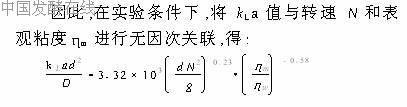 其中,N为转速(s 1),B为常数,在本实验条件下,取B=11 5。氧呼吸速率(OUR)通过动态法[5,6]测定,kLa值通过对OUR值和稳态溶氧值建立稳态质量平衡求得,通过预备实验对电极滞后引起的误差进行校正[4]。