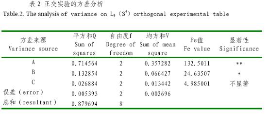 3.2.1.正交试验 为确定其合适用量,进一步优化试验,分别选取温度为A因素,N