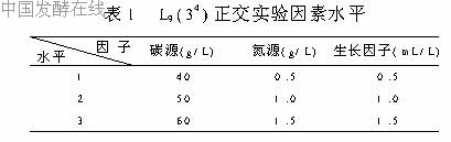 1.6.5 正交实验 在上述单因子实验的基础上,选取影响类胡萝卜素产量的主要因素进行L9(34)正交实验,进一步优化酵母LRY 01产类胡萝卜素的液体培养条件,表头设计见表1。