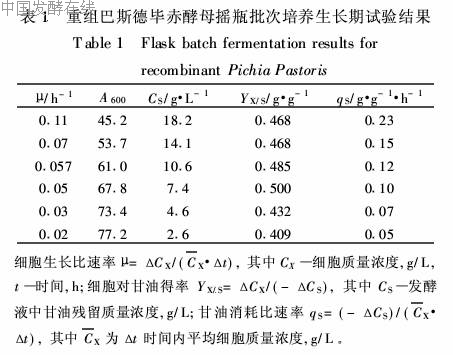 表达胰岛素的毕赤酵母生长动力学及诱导策略
