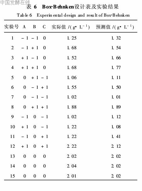 2. 3 Box-Behnken实验建立多元二次模型方程及其检验