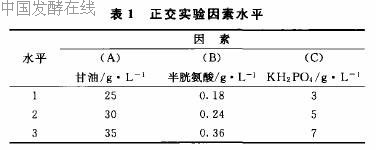 在单因素实验基础上,通过L。(3“)正交试验,选择甘油浓度、半胧氨酸浓度、KHZPO、浓度3种培养基组分作为考察对象,进一步优化培养基组成。其因素水平的选择见表1,实验设计方案参考文献「8],结果见表2。