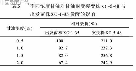 (1)不同甘油浓度对甘油耐受株XC-5-48与出发