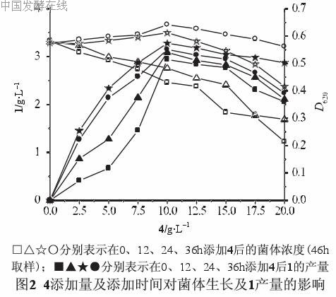 导致1产量降低;添加过迟或过少,将不能充分地起到前体诱导效应而合成1。