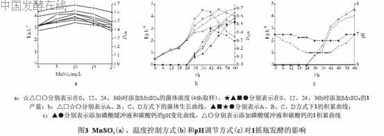本研究主要考察4、MnSO4、温度、pH及培养基装量对1生物合成的影响。