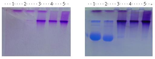 按合适比例将BSA与Dextran 40混合,用水溶解调至6% (W/V)冷冻干燥。研磨成粉末状后放置60℃下恒温,保持相对湿度79%,并在容器底部放置饱和的KBr溶液,时间0~7d[3]。每天取样进行SDS-PAGE电泳,过碘酸-Schiff试剂法染色[4]和考马斯亮兰R250染色鉴定。得到Dextran T40-BSA交联物。用同样的方法制备Dextran T40-OVA。